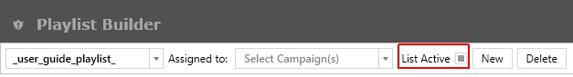 To make a Playlist definition to be available for Campaigns, you must check the List Active checkbox. Refer to the following picture.