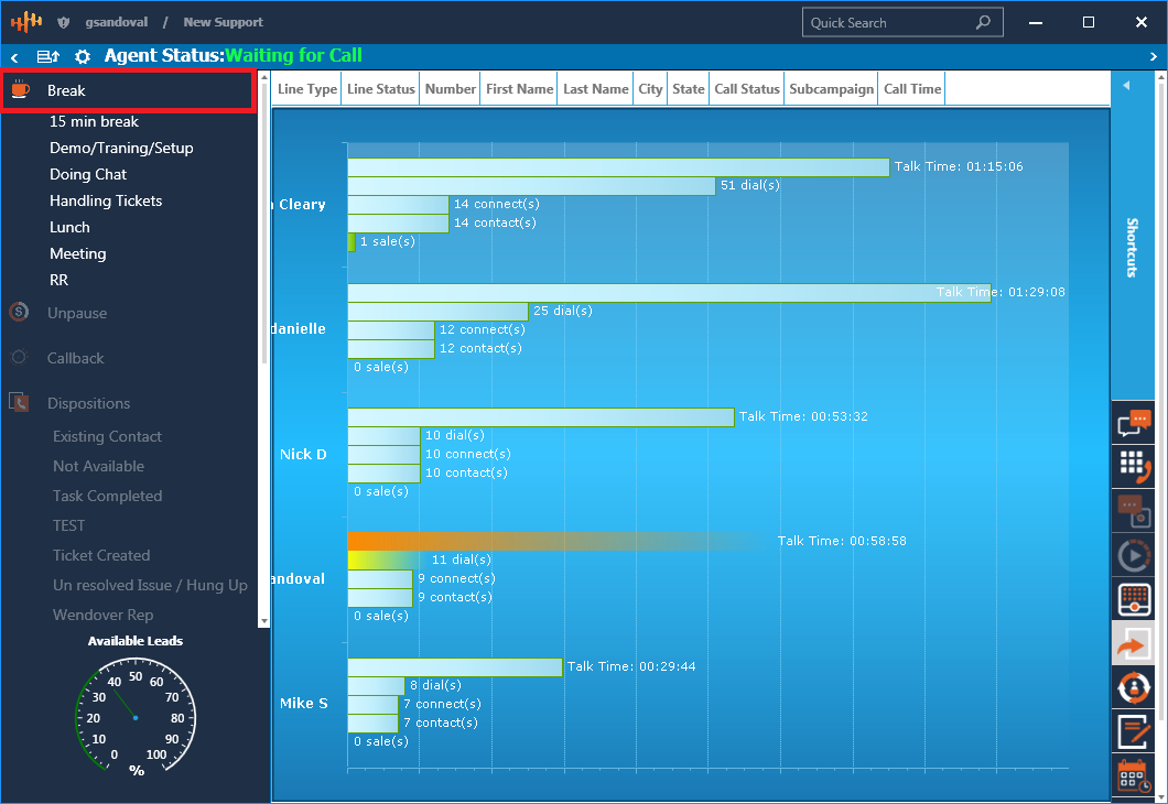 Then click on the "Manual Call" button on the left menu. If you do not see this button you may have to scroll down, or your administrator may not have given you access to manual calls.