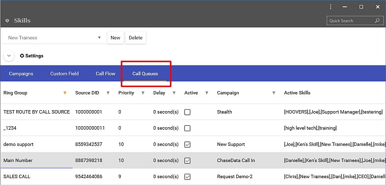 brought to the skills screen. Agent skills is a group of settings, campaigns,