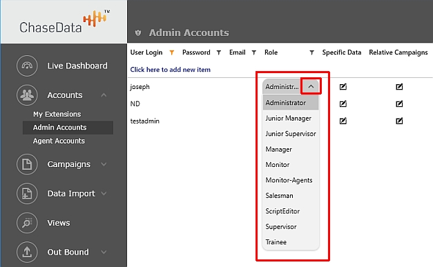 ChaseData Admin Roles