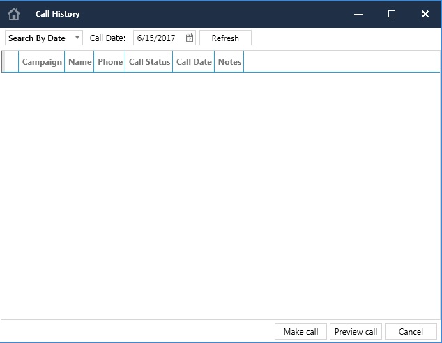Once your records have been displayed, agents can click the record then select either make call to automatically make the call, or select preview call to have the record pop up to view the details first.